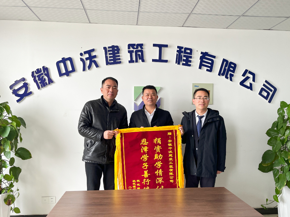 捐资助学!桃花潭镇党委政府向中沃建筑赠送荣誉锦旗
